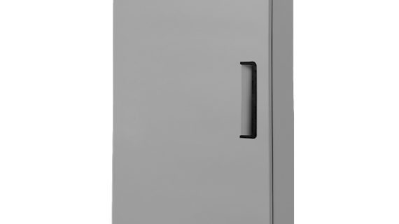 Congelador grande de dos puertas sólidas, con tecnología de aire forzado y deshielo automático.